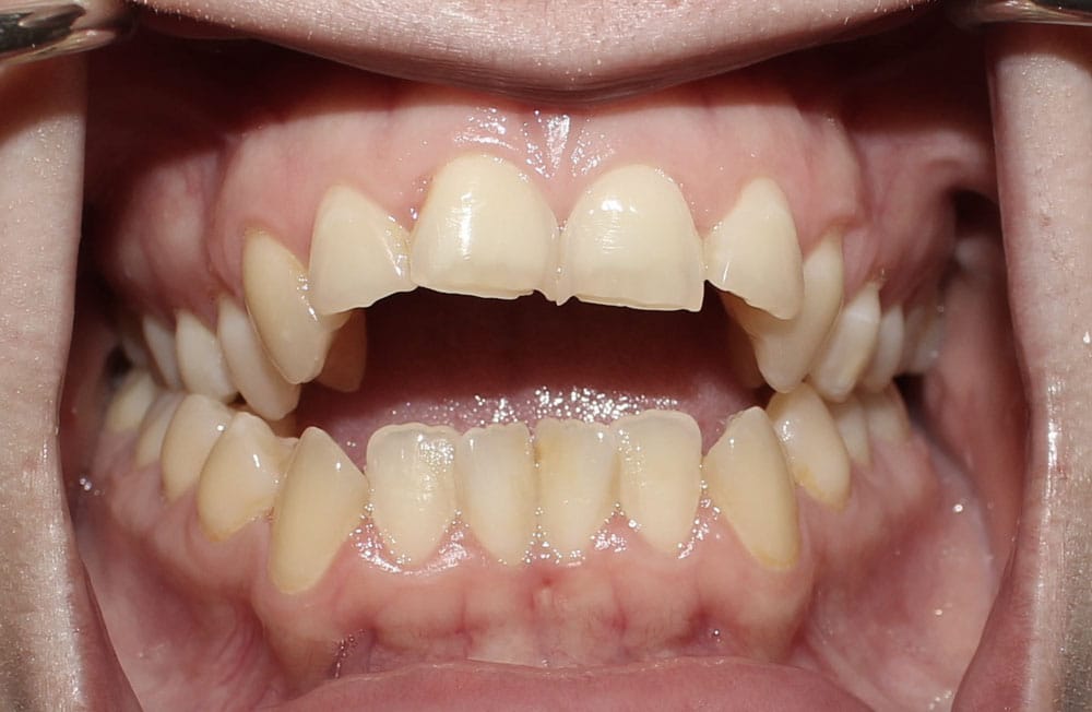 Midline shift – Garisan tengah antara gigi atas dan bawah tidak selari. Ini mungkin disebabkan oleh kehilangan gigi atau kedudukan rahang yang tidak simetri.